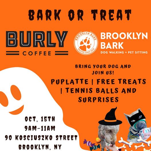 Brooklyn Bark – Dog Walking + Pet Care and Burly Coffee are teaming up again for a special Halloween event for people and pups!
