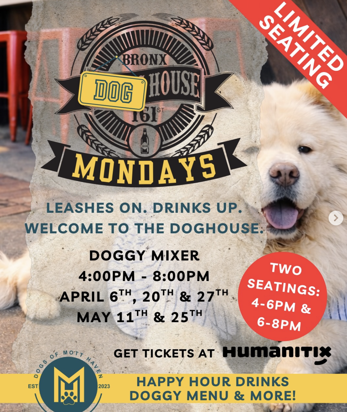 Introducing Bronx Doghouse Mondays, a dog-friendly happy hour series taking over the bar for five exclusive dates this April and May.