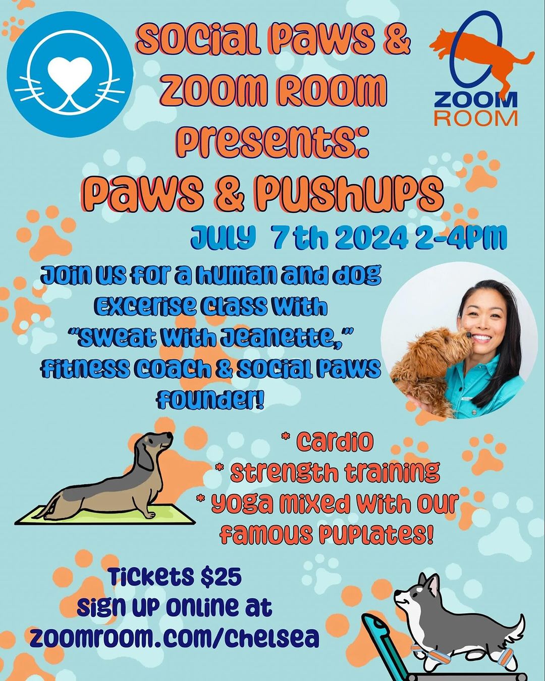 Join us July 7th from 2-4pm for Paws & Push Ups an exercise class with @sweatwithjeanette fitness coach and @socialpawsapp founder!