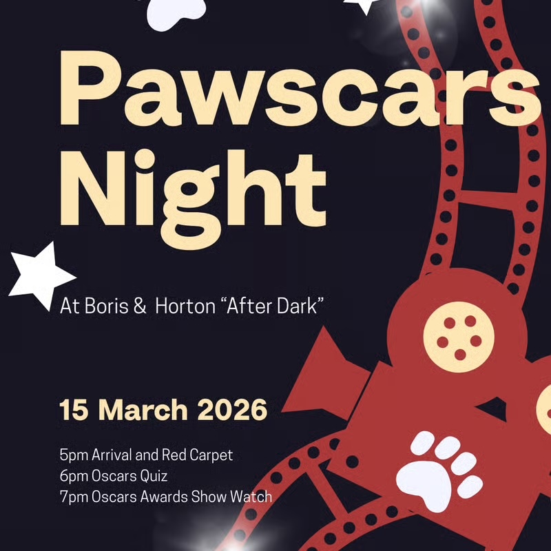 Join us for The Pawscars: An Oscars Night at Boris & Horton — our most glamorous, over-the-top, fur-bulous evening of the year. Drink specials and a movie night menu items all night long.