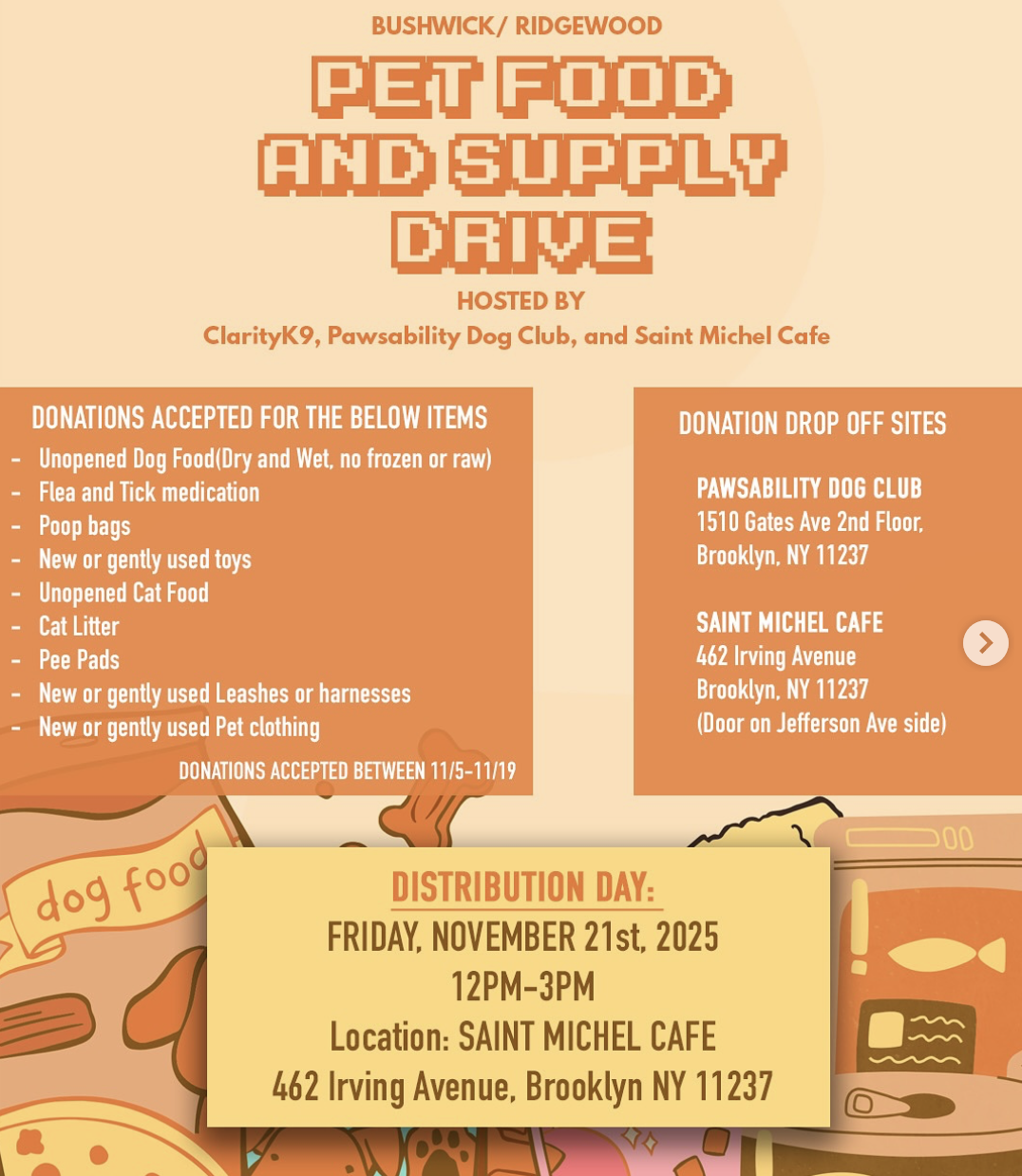 Please donate new/unopened *pet* food and supplies. See the attached flyer for specific donation guidelines!