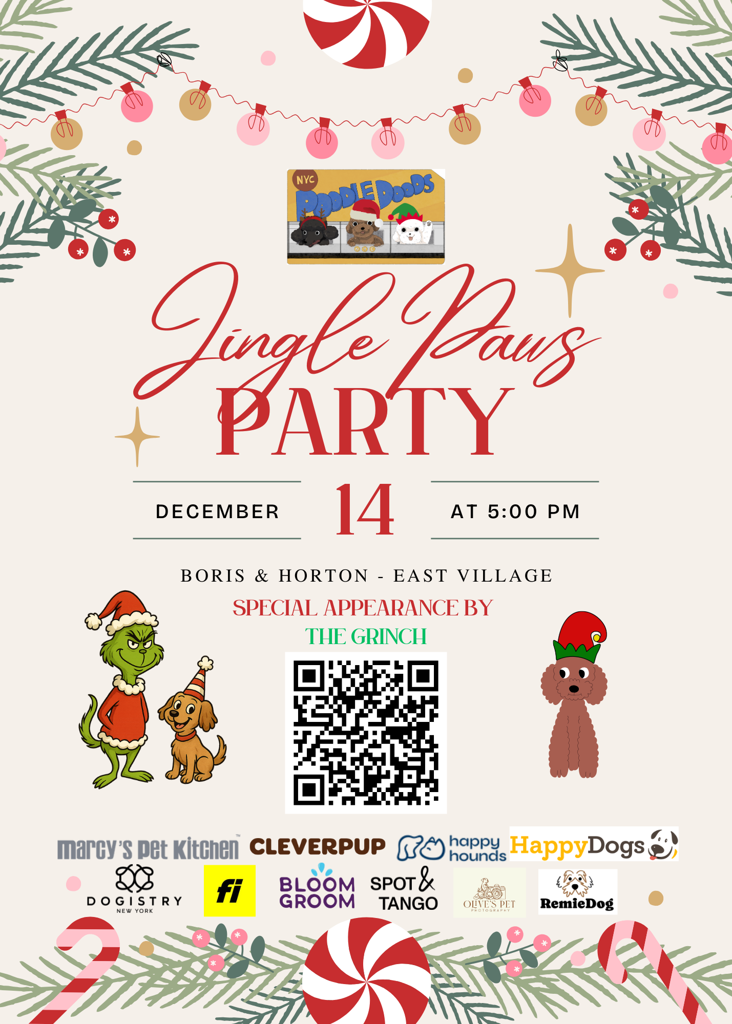 Please join Poodle Doods for a festive gathering full of jingling collars, (not so) ugly sweaters, and the very man himself – Mr. Grinch!! Donโt miss out on the fun โ mark your calendars and get ready! ๐ Sunday, December 14th ๐ 3 โ 5 PM ๐Boris & Horton – East Village ๐๏ธ $33.85 (including $3.85 Processing Fee) for 1 (ONE) human and 1 (ONE) pup. Add-on for 1 (ONE) additional human: $23.18 (Including $3.18 Processing Fee). Add-on for 1 (ONE) additional pup: $23.18 (Including $3.18 Processing Fee). Once your RSVP is approved, you will receive an Eventbrite link to purchase your ticket! Ticket includes: ๐ธ Professional photos with The Grinch by Oliveโs Pet Photography ๐ธLight snacks and beverages ๐ฆด maison de pawZ treats for the pups ๐ Gifts & giveaways from Bloom Groom, Clever Pup, Dogistry, Fi, Happy Hounds, Marcyโs Pet Kitchen, RemieDog, and Spot & Tango ๐ More!