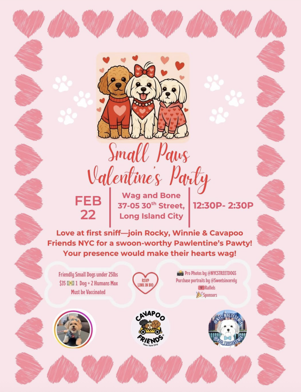 Love at first sniff—join Rocky, Winnie & Cavapoo Friends NYC for a swoon-worthy Pawlentine’s Pawty at Wag & Bone! 💕🐾Your presence would make our hearts wag!